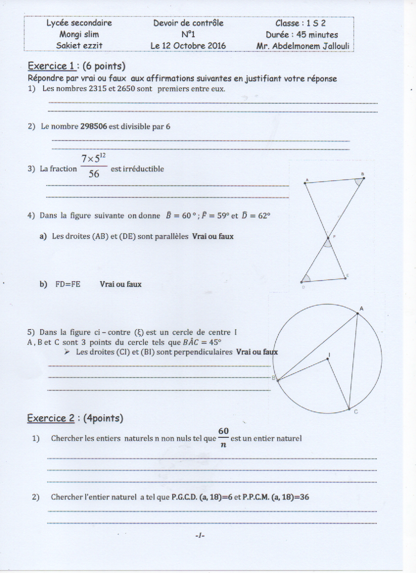 1 ère :Devoir de contrôle N°1