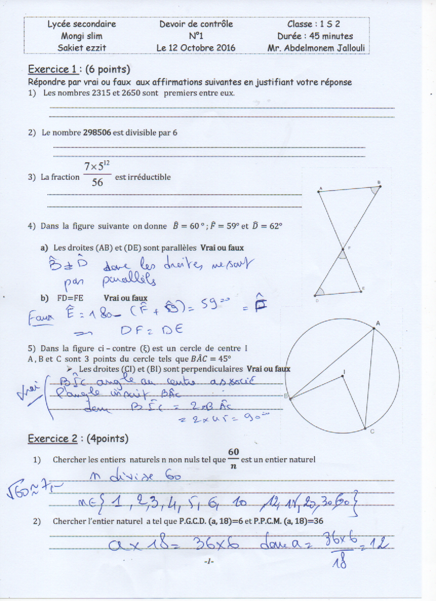 1 ère :Devoir de contrôle N°1